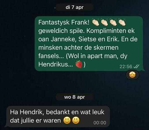 In wike letter. Mei de peaskedagen wie ús pakesizzer ek wer by ús. Hy hoegde no net mei om boadskippen, mar hy wie wol tsjûge fan it telefoantsje dat ik krige. Fan de JA-bo (…) Wy hiene wûn! Wy koene de pot dyselde deis noch ophelje!