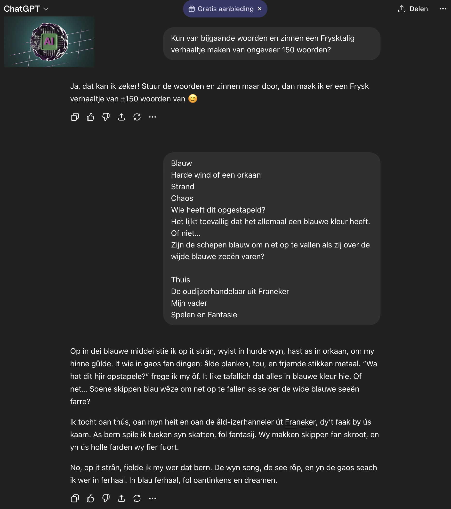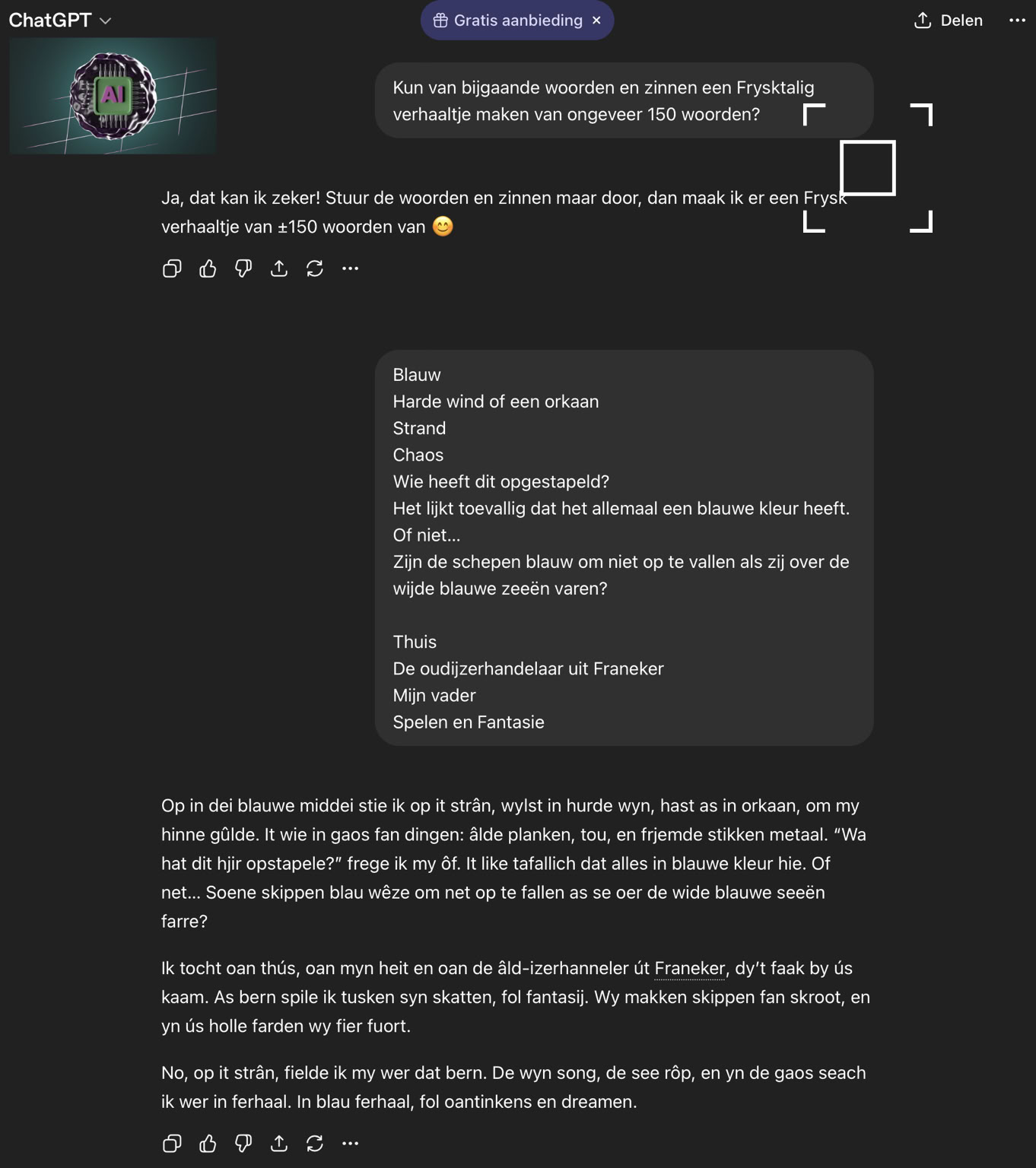 It waard in geweldige teäterjûn mei in treflike Frank. Yn in appke nei ôfrin betanke ik him foar dizze moaie foarstelling.