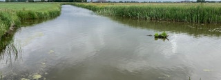 Yn ‘e feart by de mûne is in beamstobbe yn de streaming hingjen bleaun. It liket krekt in lyts eilân. It moaie is dat it eilantsje ek begûn is te groeien en te bloeien. Suver in aardich gesicht! Mar no docht bliken dat Stek it moaie eilantsje ek ûntdutsen hat. Stek kin goed swimme tink, oars soe’k net witte hoe’t Stek dêr sa telâne kaam is…