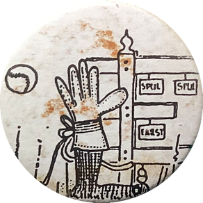 Yn in fleurige bui ha ris mei kleurpotleaden ien ynkleure. En doe’t wy foar skoalle ris in buttonapparaat liend hiene, makke ik der ek twa buttons fan. Ik ha se nea ophân. Ik hie se by ús thús op it prikboerd hongen. En dêr hingje se noch altyd…