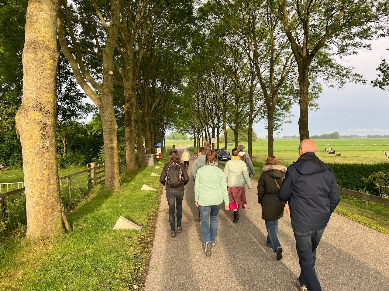 Ik hearde de fuotstappen fan de dielnimmers, it slytskjen fan de kuierbroeken en it flústerjen fan de jassen. Yn de fierte in fûgel en it motorlûd fan in betide reizger. Ek seach ik de ferskate planten yn de berm en besocht ik om noch net ûntdekte blommen te spotten.