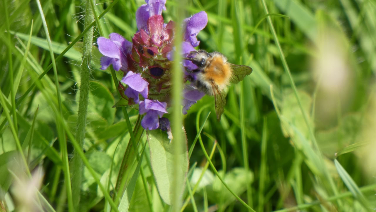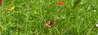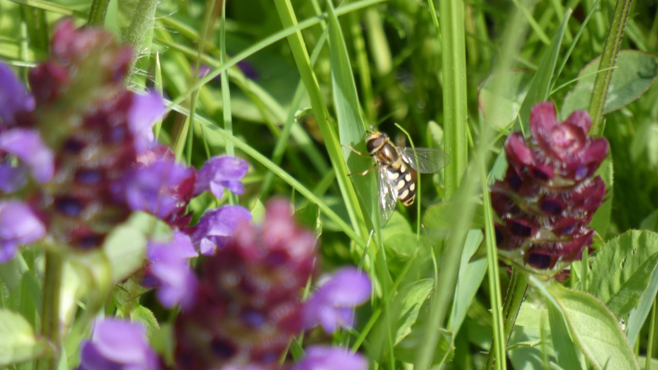 Yn dy sfear ha ik yn ‘e foartún sa’n 9 m2 net meand. It leit der prachtich hinne! Ferskate planten litte har yn folle gloarje sjen. It Oranje Haukkrûd, de Hûnetonge, de Krûpende Bûterblom, it Koweblomke, it Bijekuorke en de Tongerblom om mar in pear te neamen. In prachtich gesicht! (Alteast dat fyn ik…) Buorman fierderop, dy’t bijen hâldt, sil wol bliid wêze mei sa’n ekologyske doarpsgenoat.