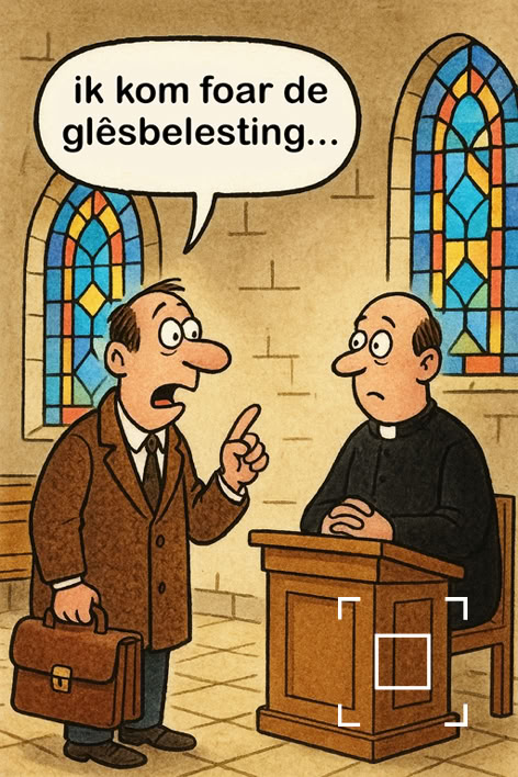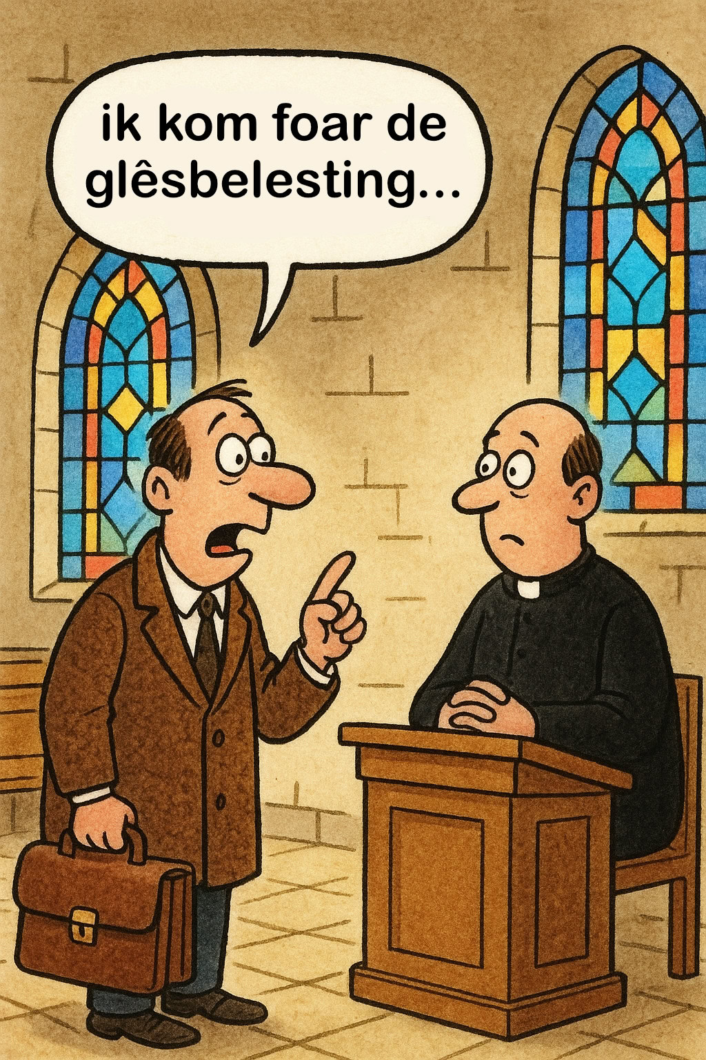 Nuver, sa’n koarte moeting. En dan mei sokke healwize fragen. Glêsbelesting? Soe dat wier wêze? Mar doe’t ik it thús op ynternet opsocht hie, die bliken dat de fytser út Feanwâlden net samar wat út syn mouwe skodde hie. Yndie, der wie in tiid dat se belesting fregen foar it oantal ruten. Ik koe my net foarstelle dat soks doetiids ek foar ús tsjerke oanlieding wie om se ticht te meitsjen. It soe wol fanwegen de kjeld wêze…