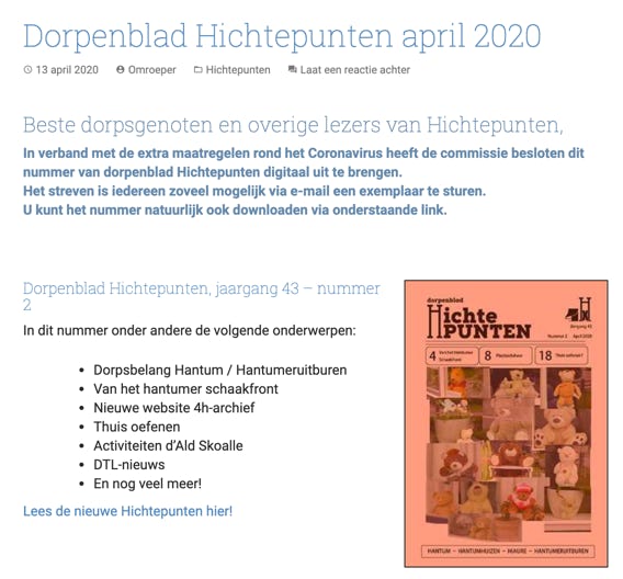 Nee, in papieren doarpsblêd wie dizze kear gjin opsje as jo mei frijwilligers wurkje. Dan allinne mar digitaal!