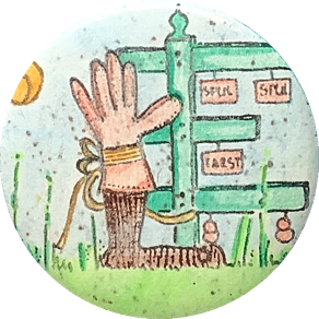 Yn in fleurige bui ha ris mei kleurpotleaden ien ynkleure. En doe’t wy foar skoalle ris in buttonapparaat liend hiene, makke ik der ek twa buttons fan. Ik ha se nea ophân. Ik hie se by ús thús op it prikboerd hongen. En dêr hingje se noch altyd…