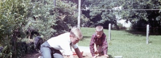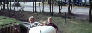 Dizze foto is fan in fakânsje yn Nijverdal, yn 1965. Fakânsje yn in âlde bus dy’t omboud wie ta in soarte fan karavan. Mar wat wie’t moai! Mar in miggen nachts! Dat heucht my noch goed…