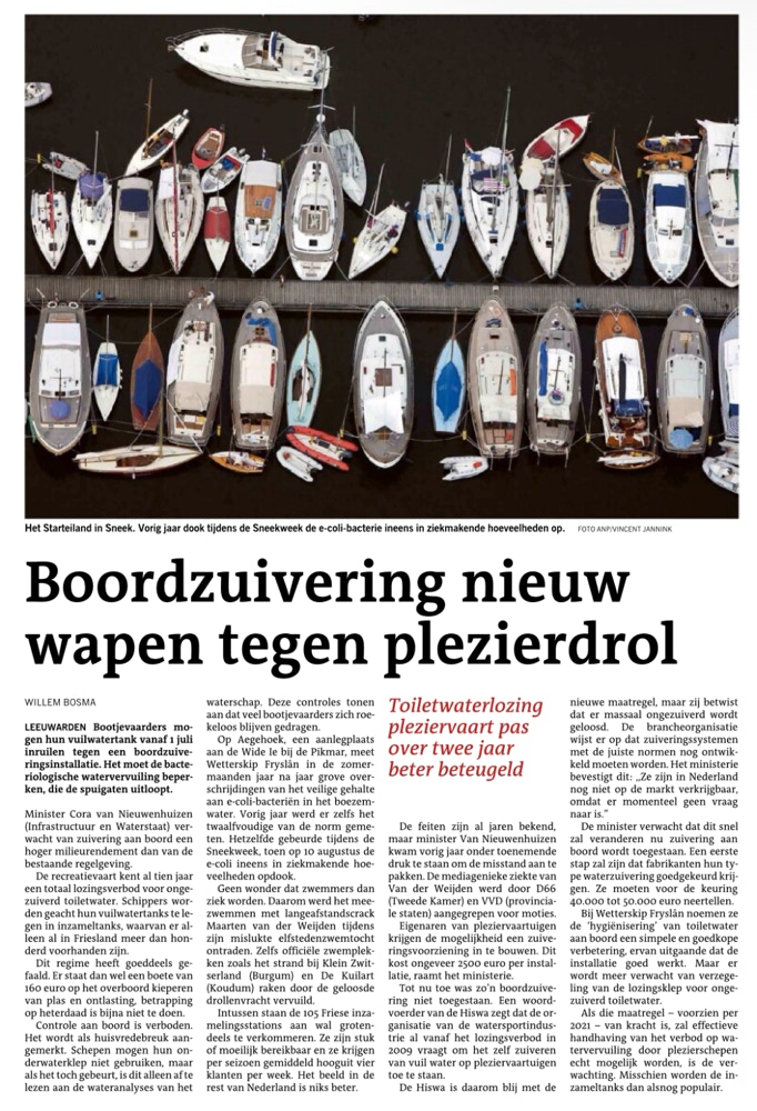 En soks komt dan ek wer boppedriuwen as men sa’n ferhaal yn de Ljouwerter lêst: Boordzuivering nieuw wapen tegen plezierdrol… Fansels begryp ik wol dat jo net alles samar yn it wetter smite kinne en dat der rigels foar binne. Mar ach ien lyts keuteltsje moat dochs kinne? Fuort is fuort, de natuer rêdt him der wol mei. Boppedat hoege jo him dan ek net mear by it skjinne ein te pakken…